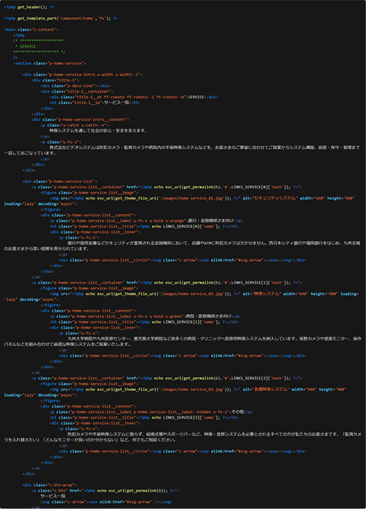 ホームページ制作会社と名乗っていても、実は営業マンだけでデザインもコーディングも外注、という会社も少なくありません。メディアクロスはホームページの構成を考えるディレクションから実際に作りこんでいくデザイン・コーディング、公開後の保守・運用まですべて一貫して内製しています。『メディアクロス品質』を満たさないものは作らない。ものづくりに携わる矜持をもって高品質なホームページを制作しています。